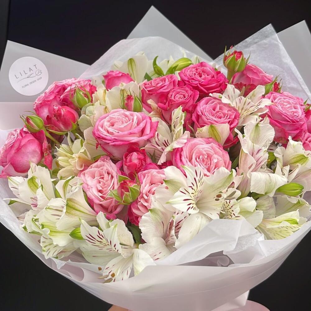 Гвоздики, Кустовые розы, Лизиантусы, Пионовидные розы, Розы