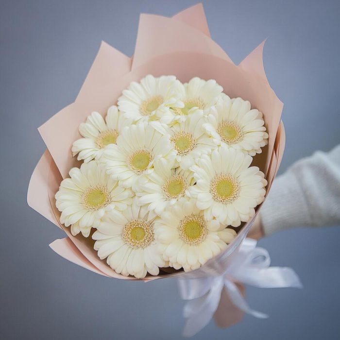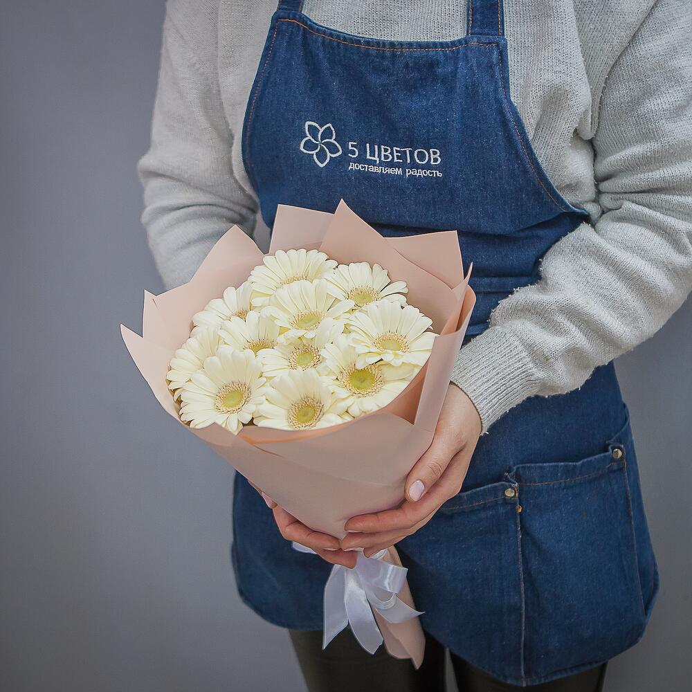 Букет из 11 белых кустовых хризантем Сантини с зеленью