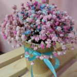 “Сиреневый туман” – композиция из гипсофилы в шляпной коробке