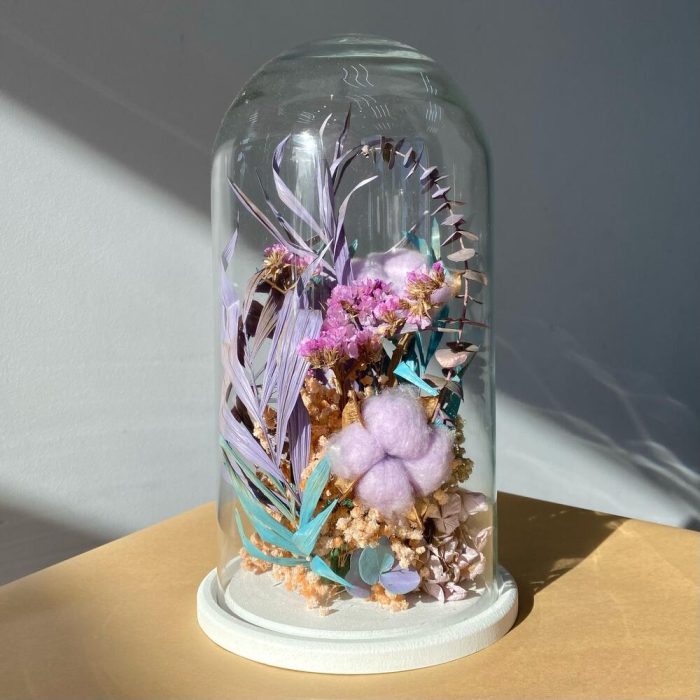 Хлопок – 2 шт.Статица – 1 шт.Эвкалипт Baby Blue – 1 шт.пальмовый лист – 3 шт.Гипсофила – 2 шт.Озотамнус – 3 шт.Эвкалипт цинерея – 1 шт.