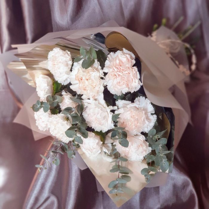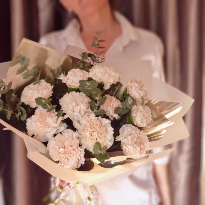 15 лавандовых гвоздик с эвкалиптом (букет N 24)