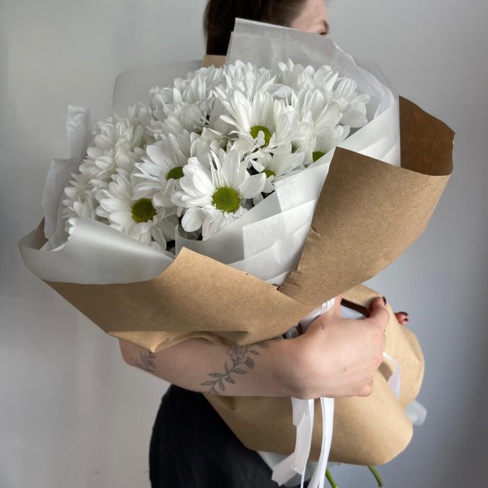Букет кустовых хризантем в крафте