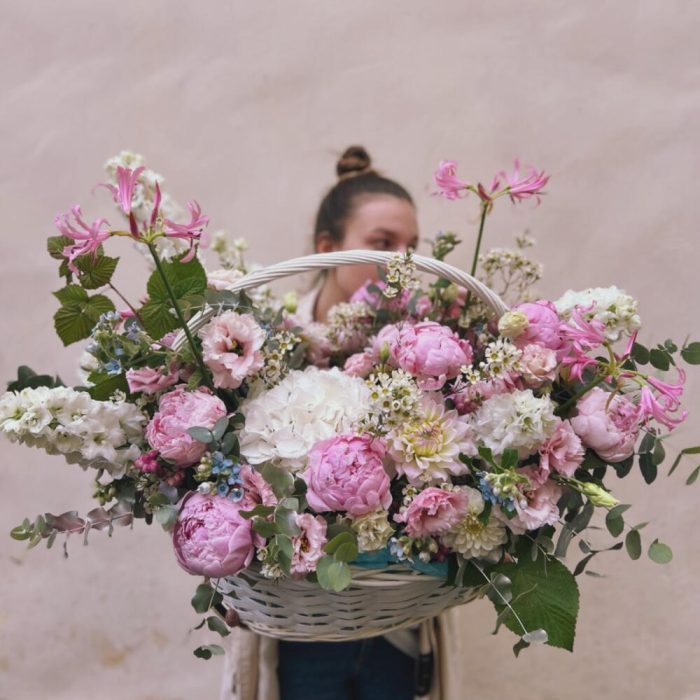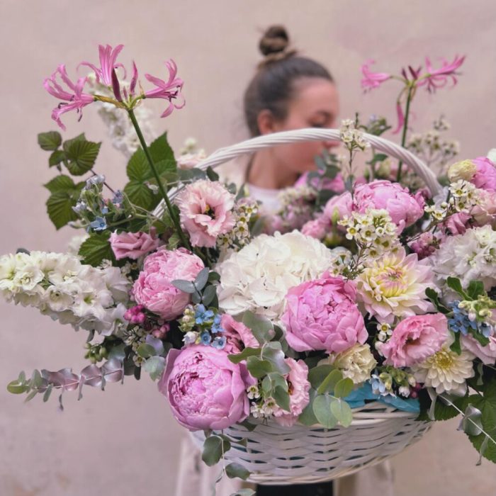 Большая корзина с пионами “WILD FLOWER”