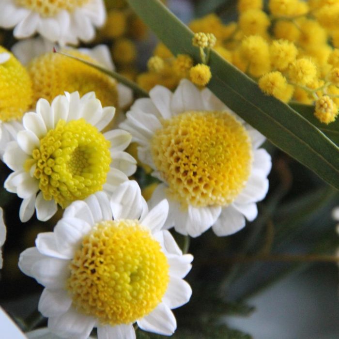 Твоё поле – Букет с ромашками, мимозой и нарциссами
