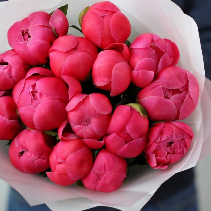 Лента атласная – 1 шт.Упаковка дизайнерская – 4 шт.Пион коралл шарм – 15 шт.