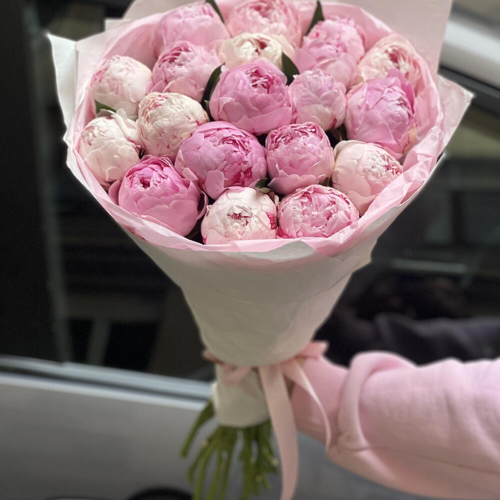 19 нежно розовых пионов