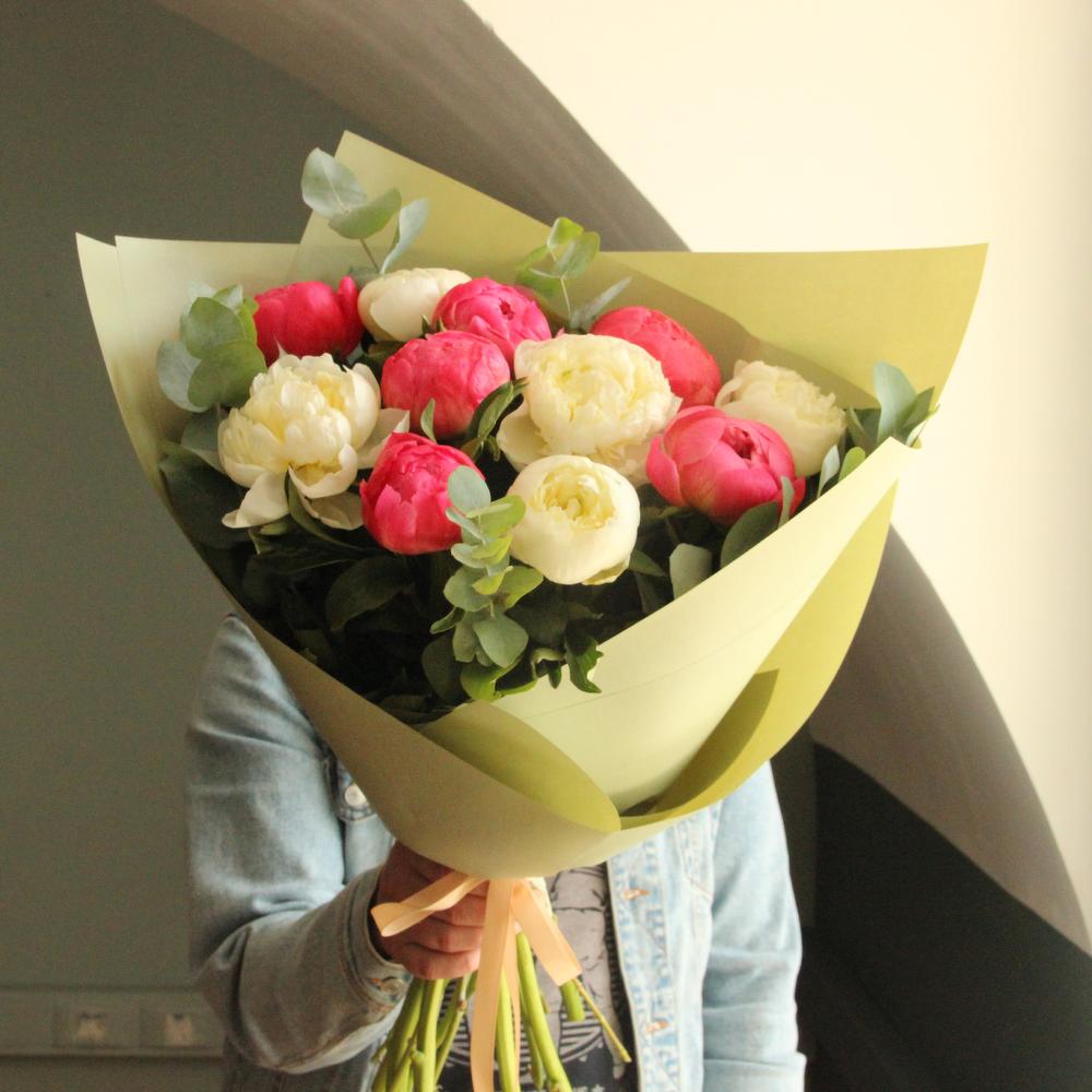 Пион – 11 шт.Эвкалипт – 5 шт.Упаковка – 1 шт.