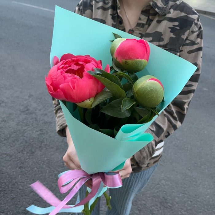 УТРО В ПЕТЕРБУРГЕ – это премиум букет из пионов в упаковке Тиффани Блю, который порадует вас своей яркостью и свежестью. Букет состоит из 3 пионов Корал Шарм, которые имеют насыщенный коралловый цвет и бархатистую текстуру. УТРО В ПЕТЕРБУРГЕ – это букет для тех, кто хочет … Показать ещёподарить своим родным или друзьям энергию и жизнелюбие. Этот букет подходит для любого случая, будь то день рождения или просто хорошее утро.