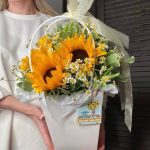 Сезонный букет в солнечных светлых оттенках будет прекрасным подарком, напоминающем о том, что лето всегда рядом. Букеты с подсолнухами – неординарный и яркий подарок с положительными эмоциями в комплекте.