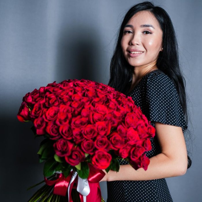 Метки: 101 роза, от 5000 руб, Роза 50 см