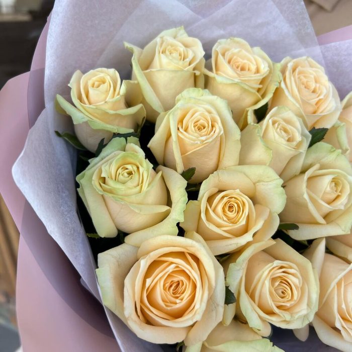 роза премиум 60 см – 15 шт.Дизайнерская упаковка – 5 шт.Лента атласная – 2 шт.