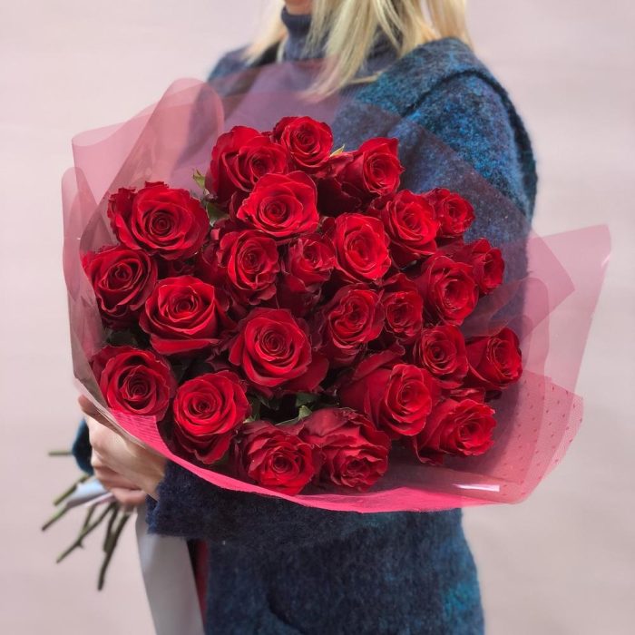 Роза красная 70 см – 25 шт.Упаковка дизайнерская – 3 шт.