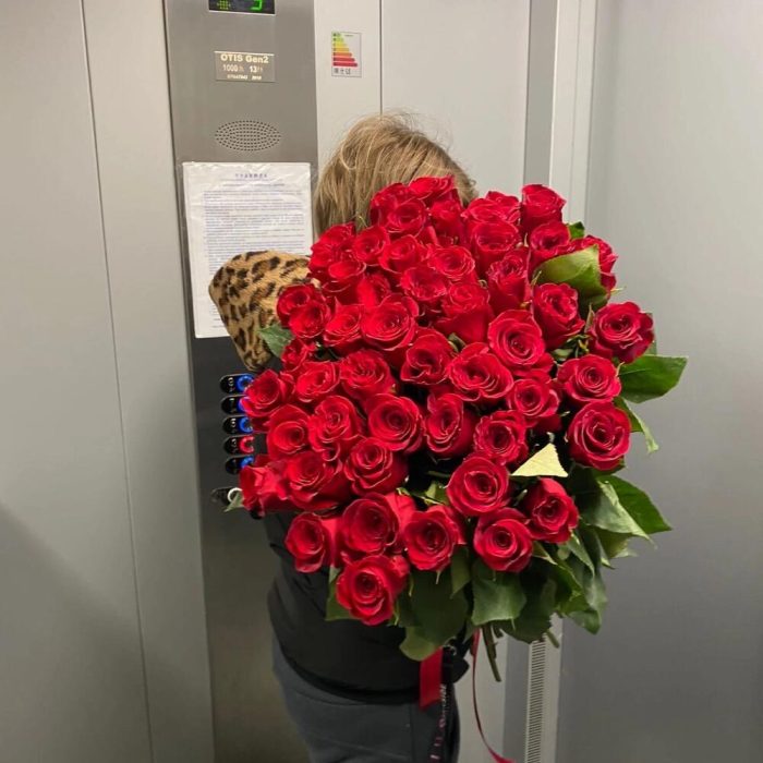 розы эквадор 51 штука 70 см – 51 шт.Лента атлас – 1 шт.