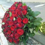 роза красная украинская – 101 шт. Лента атласная – 1 шт.