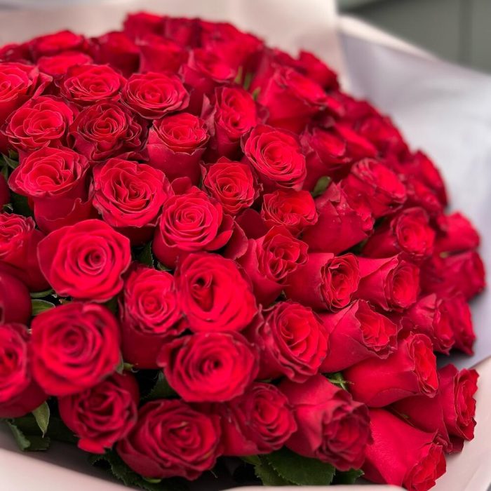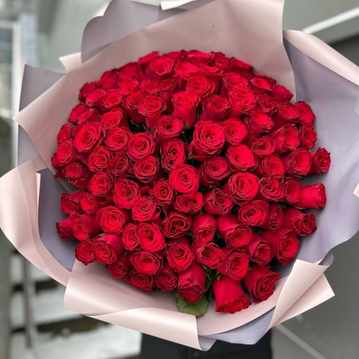Красная роза – 101 шт. декоративная упаковка – 1 шт.