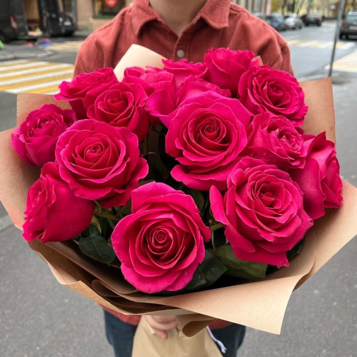 Букет из 15 ярко-розовых ароматных роз