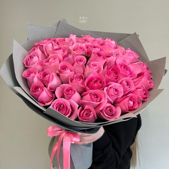 Букет из 45 розовых роз в упаковке