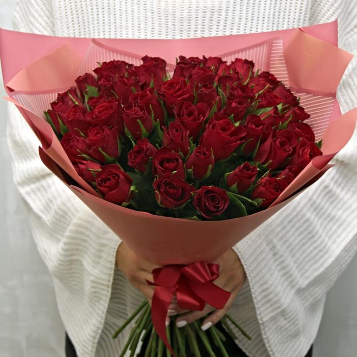 Букет из 51 красной розы 35-40 см (Кения) в стильной упаковке
