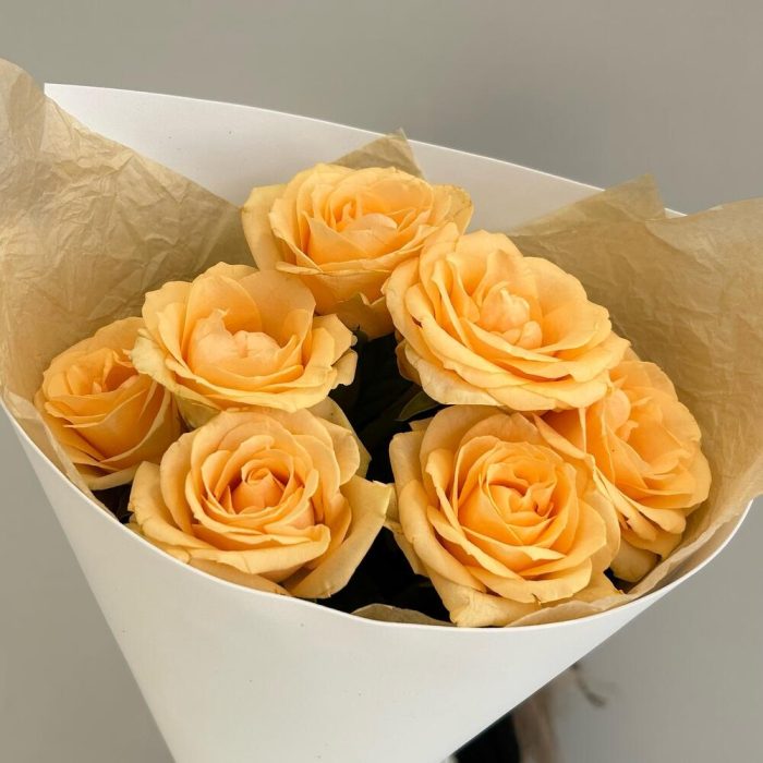 Роза – 7 шт.Лента атласная – 1 шт.Упаковка дизайнерская – 2 шт.