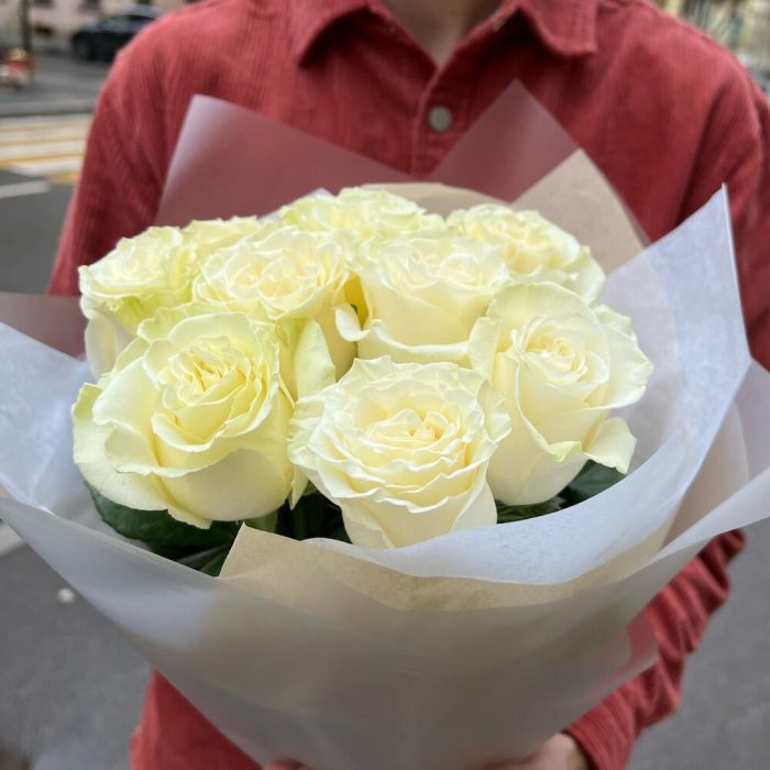 белая роза мондиаль – 9 шт.Упаковка дизайнерская – 1 шт.
