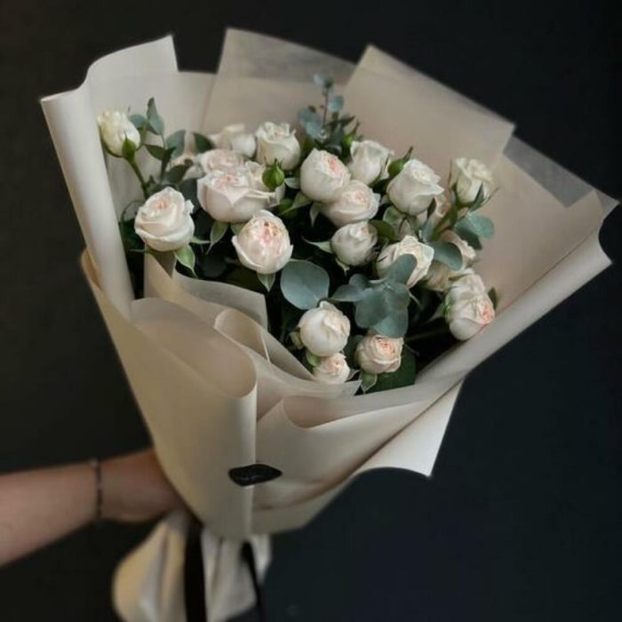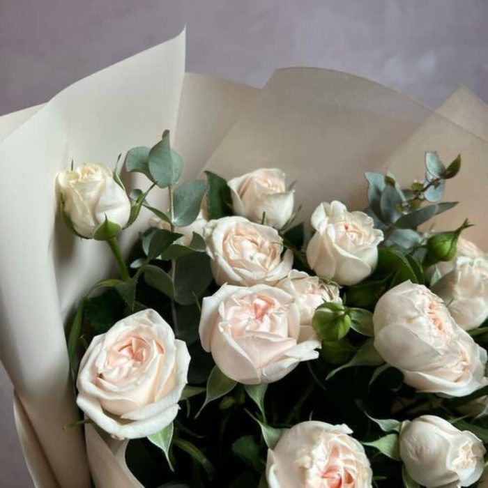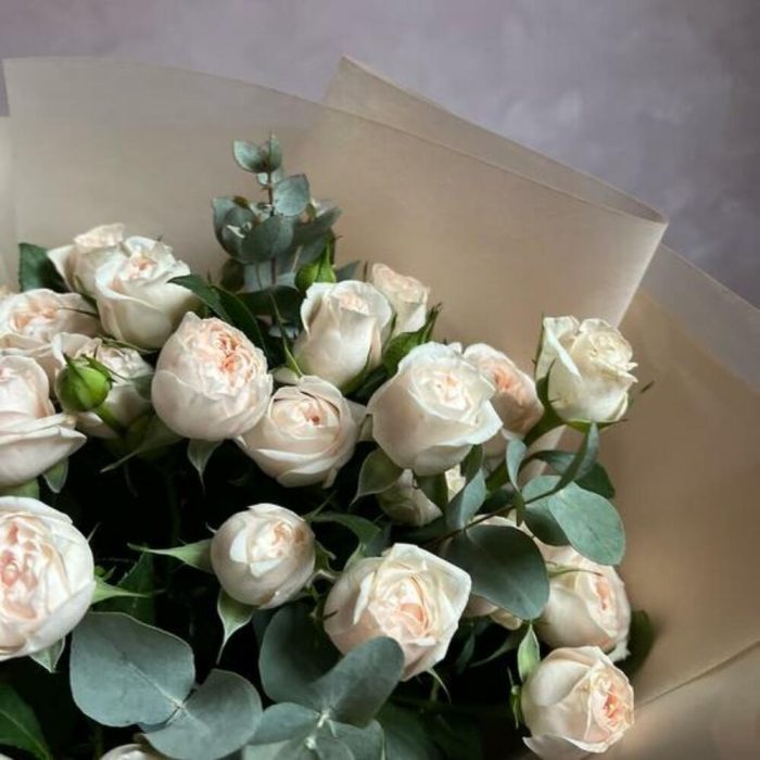 Букет из пионовидной кустовой розы и эвкалипта “Нежность”