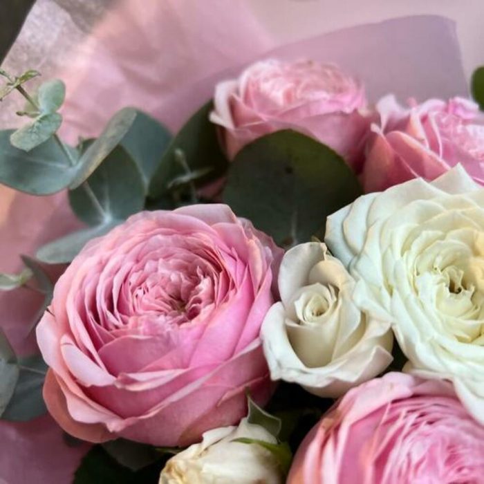 Букет из пионовидных роз с эвкалиптом
