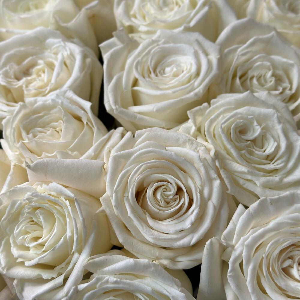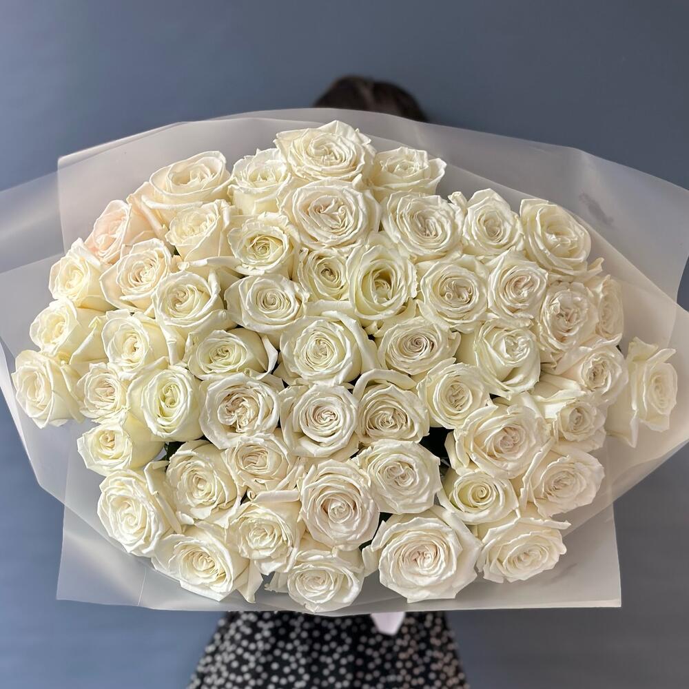 роза пионовидная плая бланка – 49 шт.матовая прозрачная корейская пленка – 3 шт.Лента атласная – 1 шт.