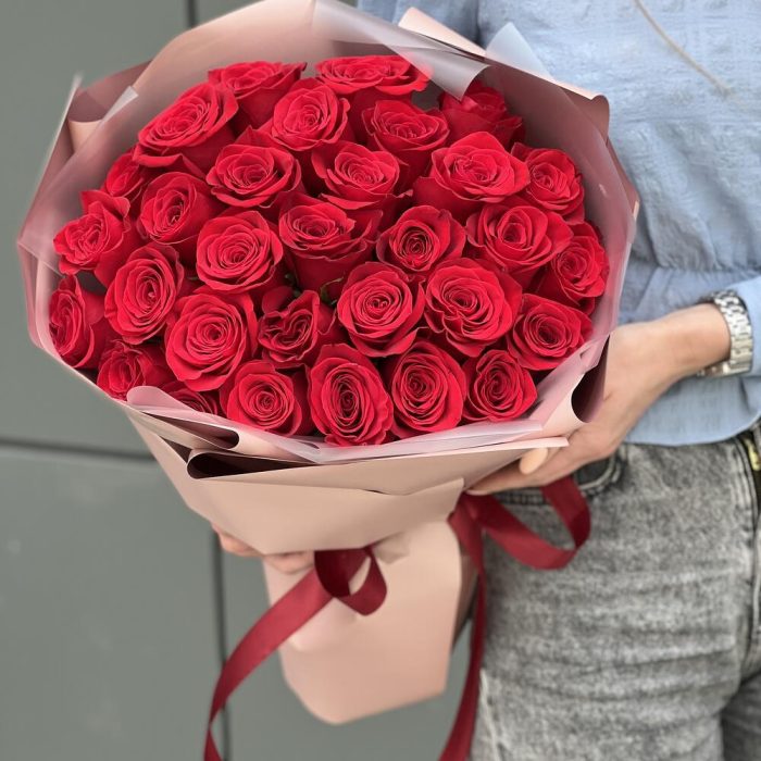 Роза красная – 31 шт. Оформление – 1 шт.