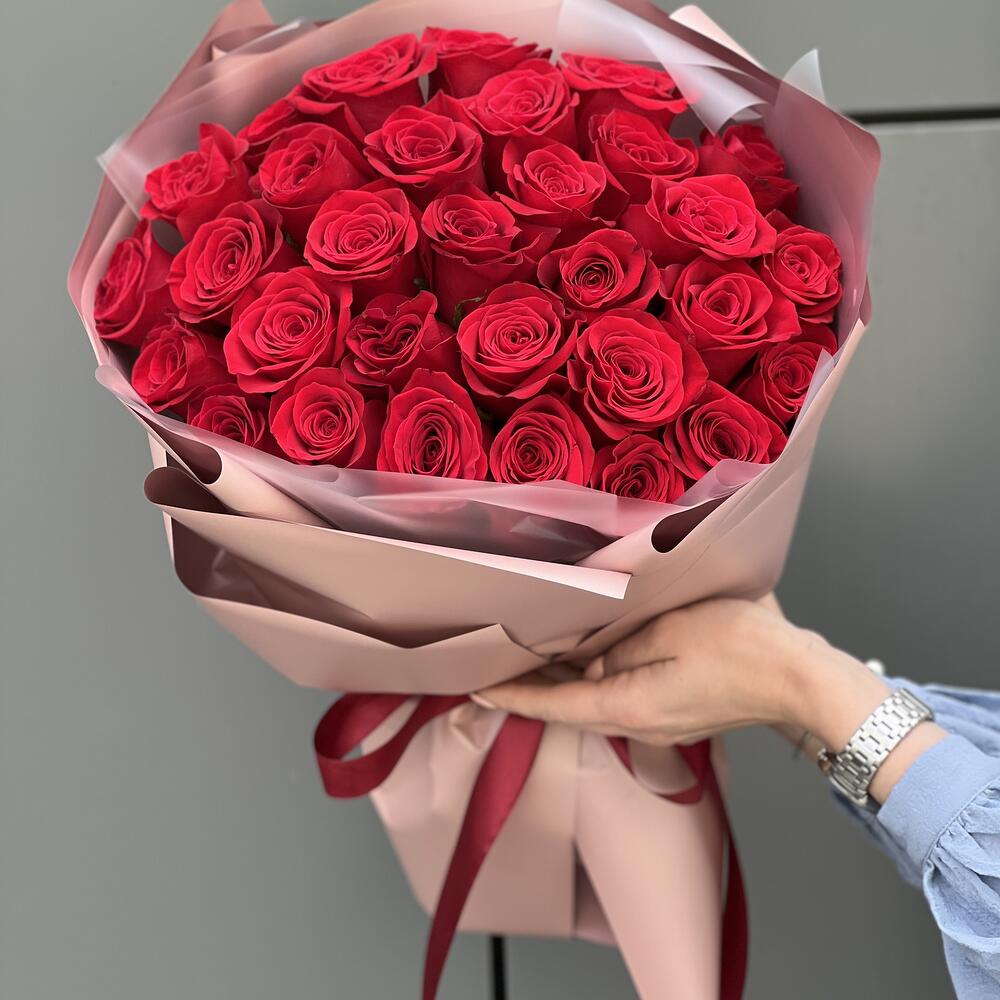 Букет из 31 красной роза в оформлении!