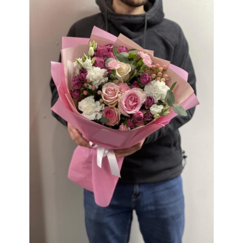 Гвоздики, Кустовые розы, Лизиантусы, Пионовидные розы, Розы