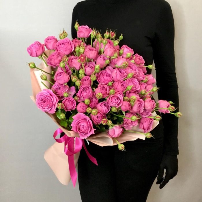 Лента атласная – 1 шт.пленка перламутровая – 2 шт.пионовидная кустовая роза баблз – 15 шт.