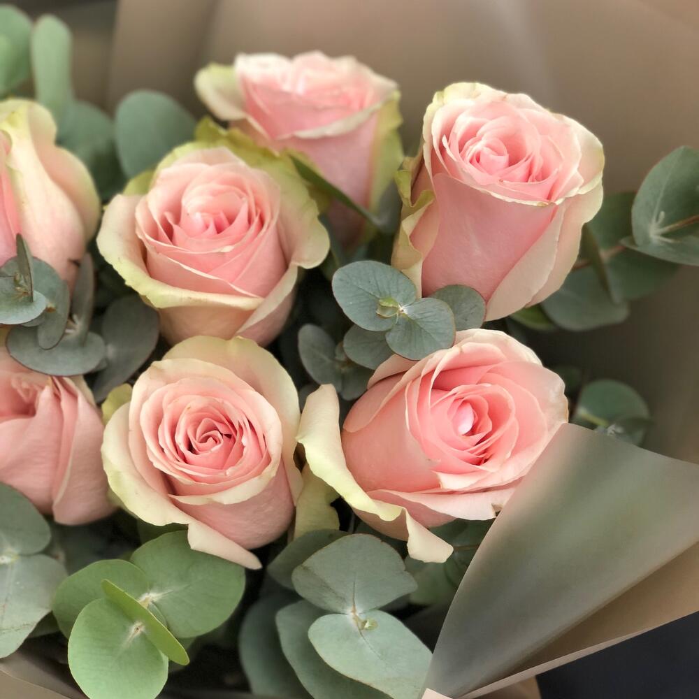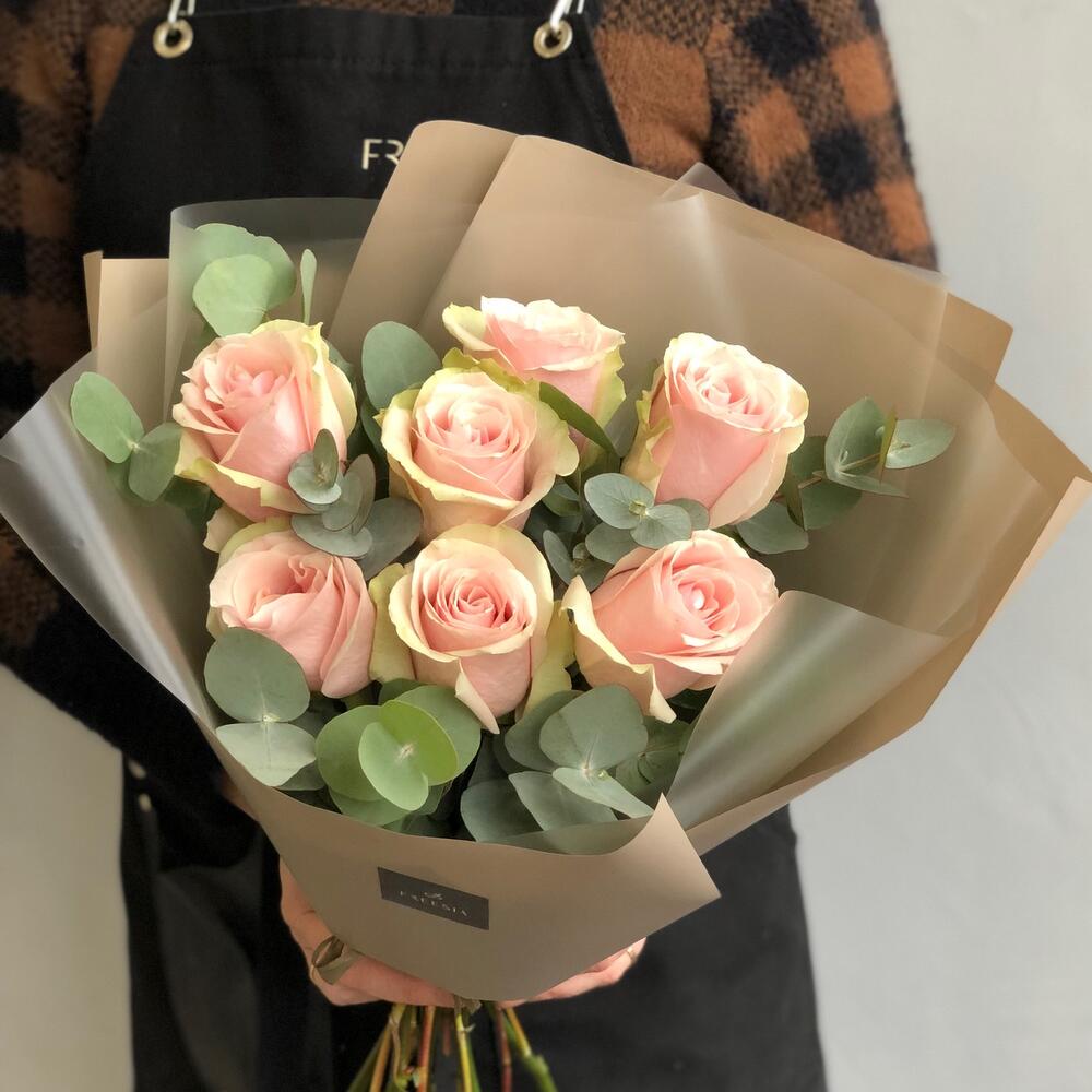 Букет из розовых кустовых Роз Мадам Бомбастик (7 шт)
