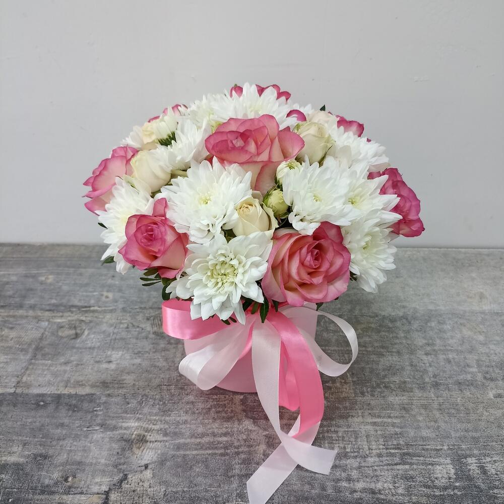 "В твоих глазах": нежная шляпная коробка с французскими розами