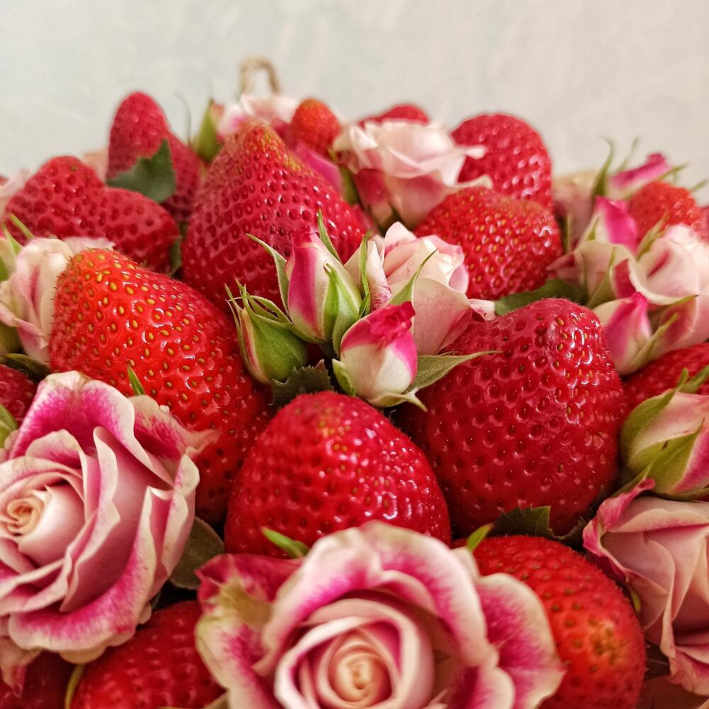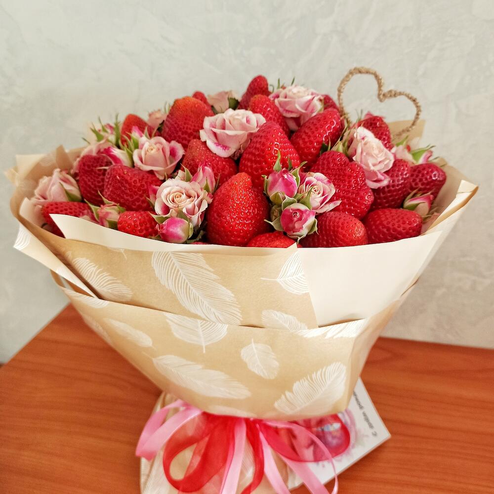 Роза кустовая розовая – 3 шт.клубника крупная отборная – 800 гр.