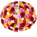 Роза кенийская микс – 101 шт.Корзина – 1 шт.Оазис – 2 шт.