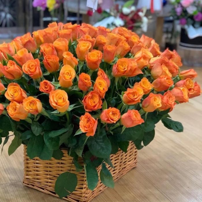 Корзина с оранжевыми розами