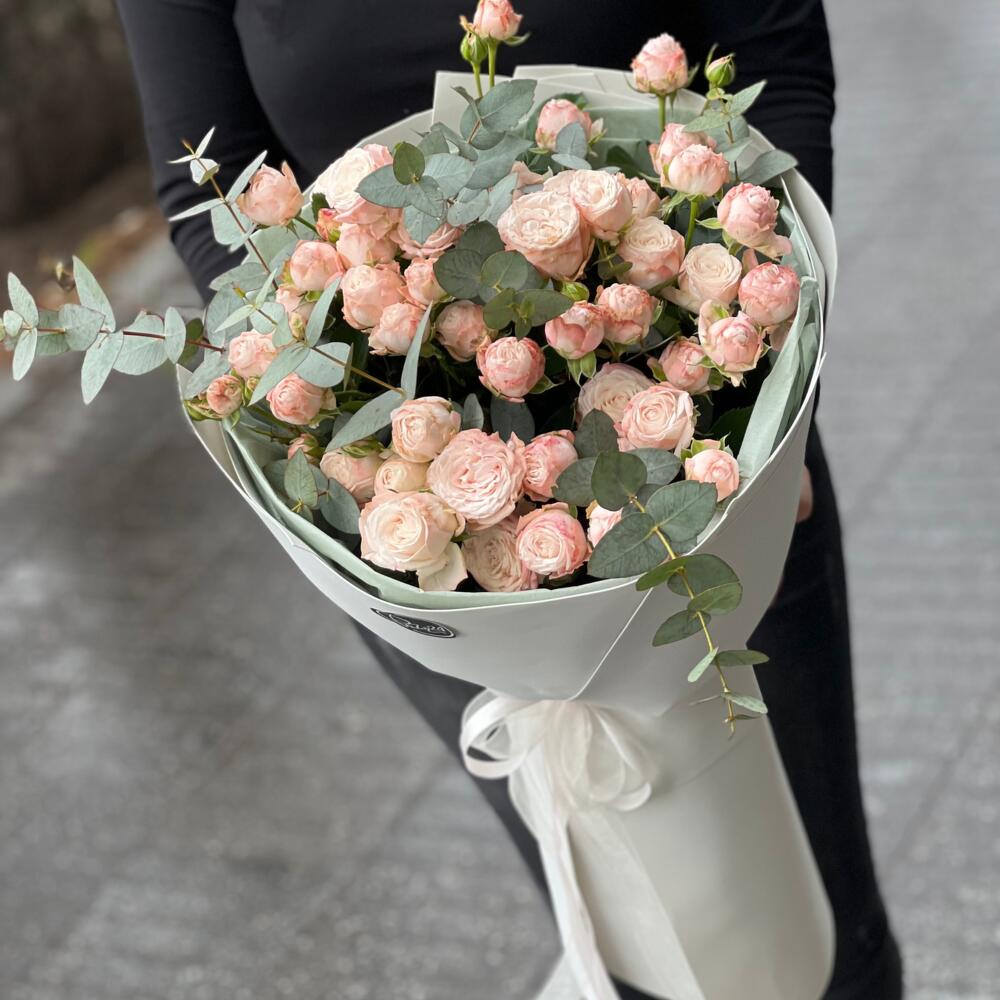 Альстромерии, Кустовые розы, Лизиантусы, Пионовидные розы, Розы, Ромашки