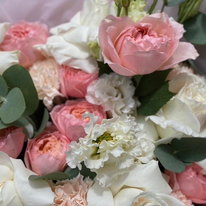 Категорий: Гвоздики, Гортензии, Лизиантусы, Пионовидные розы, Розы, Хризантемы