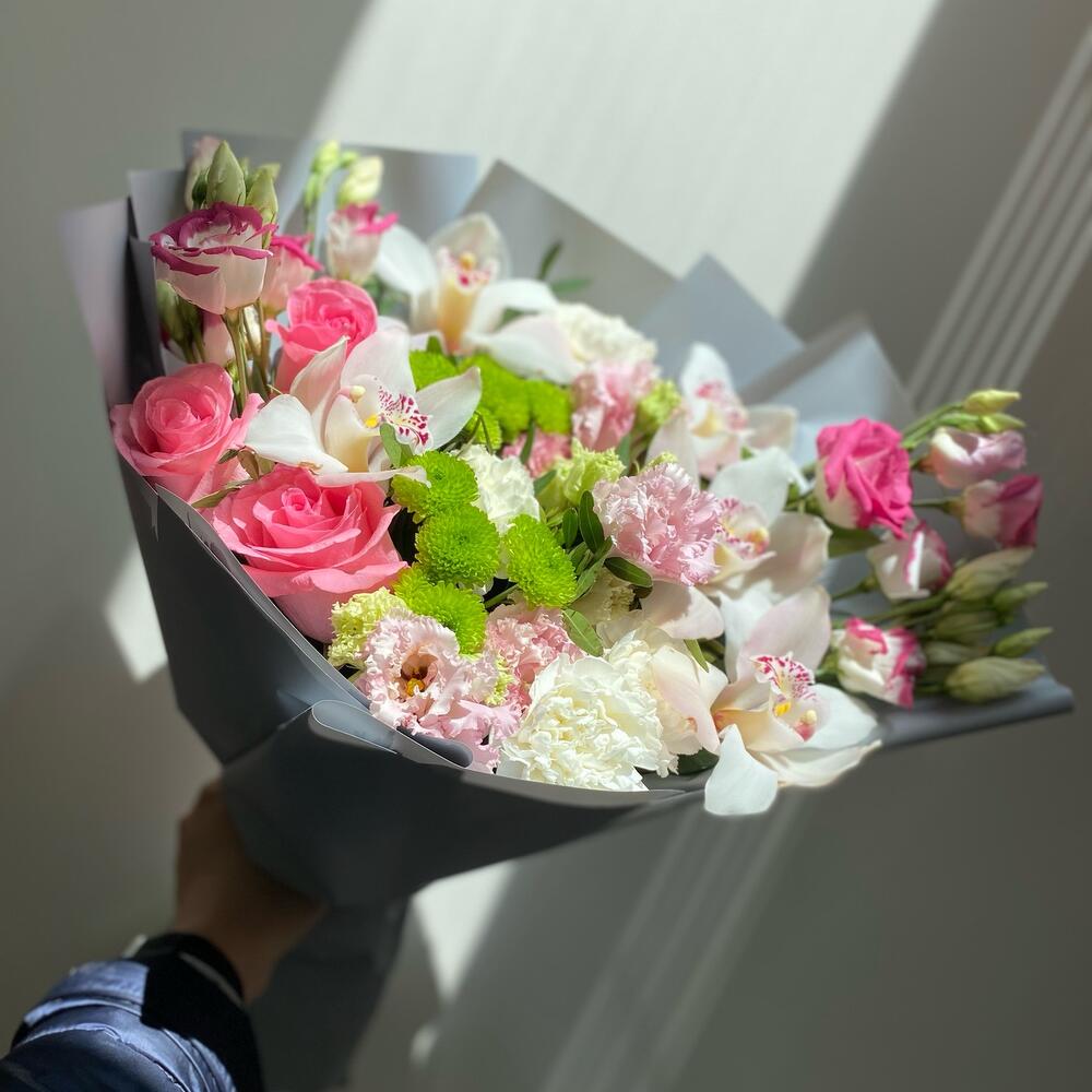 Категории: Гвоздики, Лизиантусы, Орхидеи, Розы