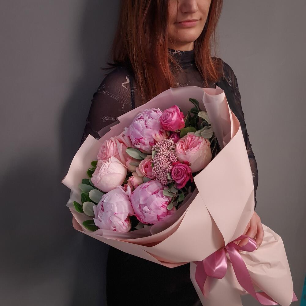 Альстромерии, Кустовые розы, Лизиантусы, Пионовидные розы, Розы, Ромашки