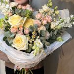 Роскошный светлый букет с пионовидной розой, матрикарией, вибурнумом и лизиантусом. Профессиональные флористы соберут для вас уникальный, стильный букет или композицию. Добавят к цветам открытку, инструкцию по уходу за цветами, chrysal. Бережно упакуют цветы в красивую, … Показать ещётранспортировочную упаковку. Курьеры быстро и бережно доставят заказ адресату. Также с радостью подберём для вас красивые свечи и предметы интерьера, которые прекрасно подойдут для подарка.