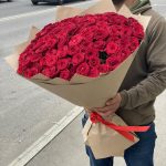 розы эквадор (60 см) – 75 шт.Крафт упаковка – 3 шт.Лента атласная – 1 шт.