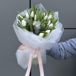 Букет из белых тюльпанов и эвкалипта в оформлении!