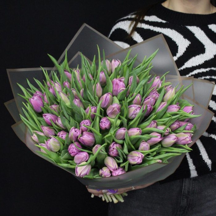 Тюльпан пионовидный дабл прайс – 75 шт.Пленка матовая – 3 шт.Лента атласная – 1 шт.
