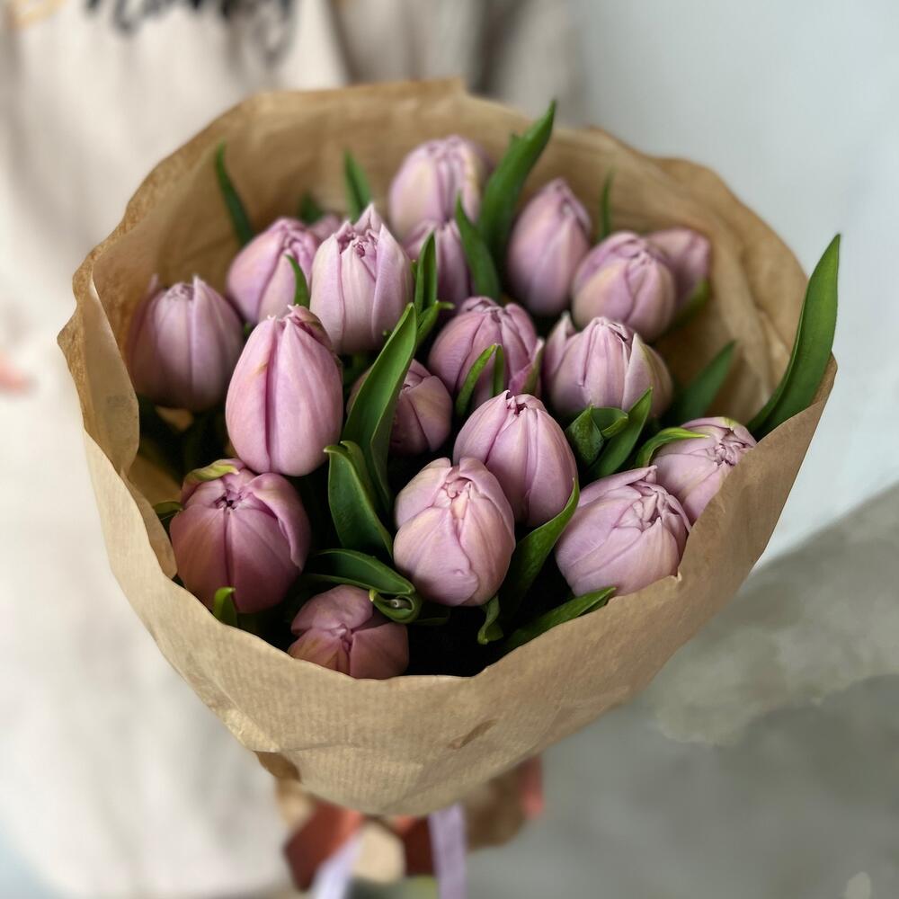 Сиреневые пионовидные тюльпаны в крафте